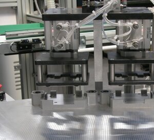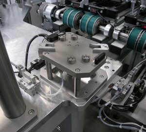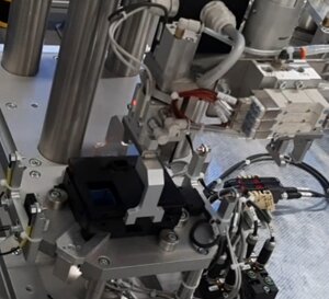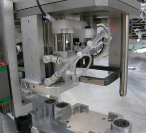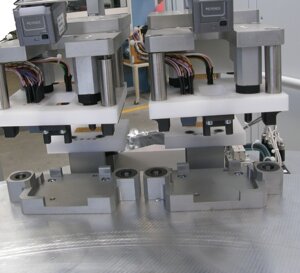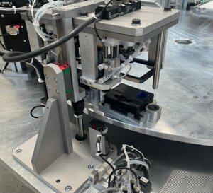 In seguito il prodotto così composto viene posato su una stazione doppia di una tavola rotante sulla quale vengono eseguite le successive lavorazioni di chiusura del prodotto, verifica corretta chiusura e allineamento dei reofori sui connettori di contattazione del pezzo, marcatura laser, collaudo funzionale e scarico buoni o segregazione scarti.